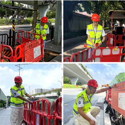 在白云大道项目现场,黄光锐、刘俊生坚守岗位,每天巡察施工路段的围蔽设施、施工疏解道路等情况,对发现问题立行立改