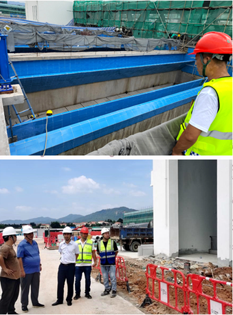 在南洲水厂项目现场,杨永光、黄晓臻、徐平辉、高庆新、李统羽、谢壁杭坚守岗位,确保工程安全平稳