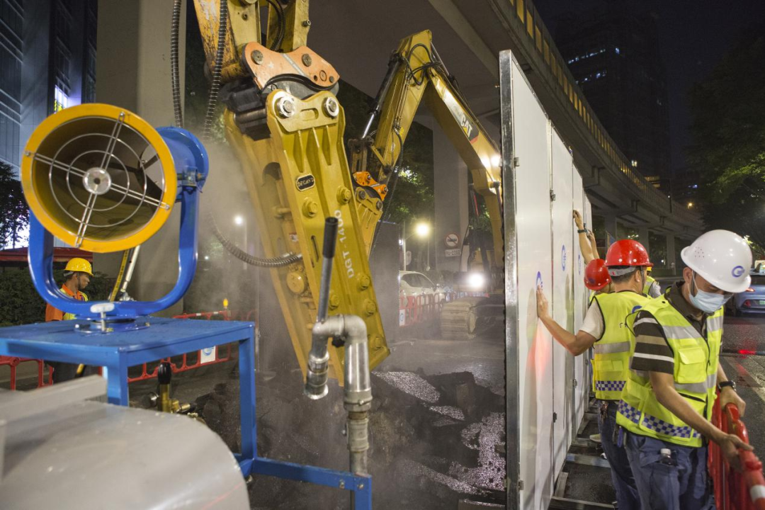 东风路供水管道改造工程是惠及荔湾、越秀、天河等中心城区50万用户的重点工程项目。自2021年5月1日进场施工以来,东风路项目部始终将安全文明绿色施工管理放在突出位置,坚持从管理、技术方面进行持续改进与提升,同时不断加强绿色建筑管理标准的实施执行力度。